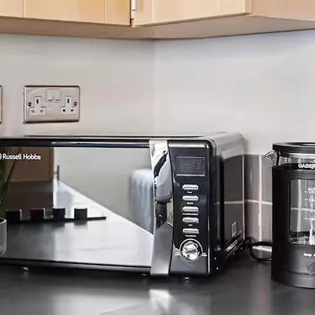 Das Apartment Leicester1BR-WiFi-ModernApt-Kitchen-Sleeps2 ist mit Selbstversorgungseinrichtungen wie einem Wasserkocher, einem Kühlschrank und einem Herd ausgestattet, so dass die Gäste ihre eigenen Mahlzeiten zubereiten können.